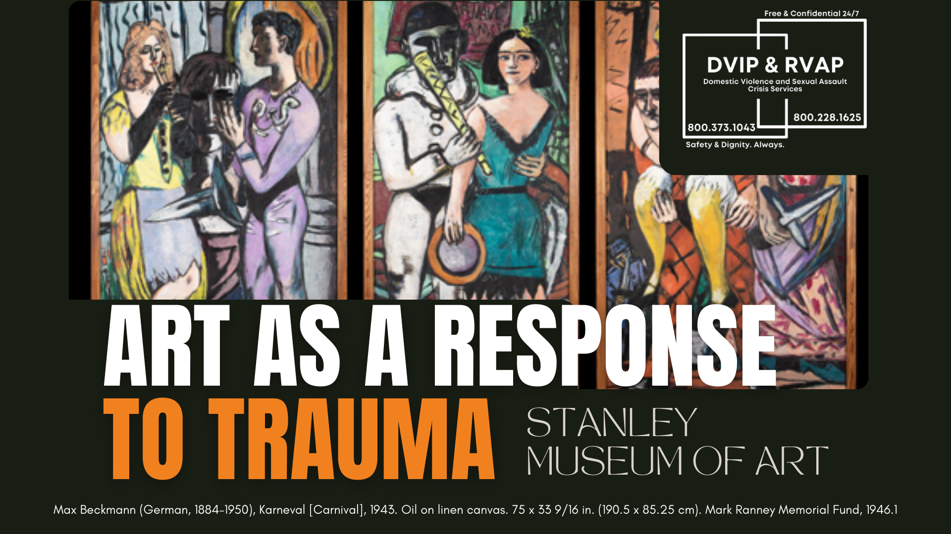 Join docents and supporters of DVIP/RVAP to tour works of art that transcend the direct experience of trauma. Following the tour, DVIP/RVAP invites you to join them for refreshments and a panel discussion exploring how advocates use art to support victim-survivors in their healing process and how you can help!